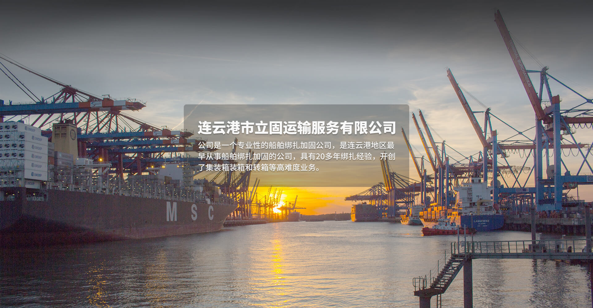 連云港市立固運輸服務有限公司成立于1997年,是集生產(chǎn)、銷售于一體的實體型企業(yè),主要經(jīng)營范圍包括國內(nèi)外船舶貨物綁扎加固,船舶物料供應與回收;專業(yè)加工生產(chǎn)各類型的木托盤、木制包裝箱、免熏蒸膠合板木托盤,膠合板木箱等,并為客戶設計定制、安裝服務。