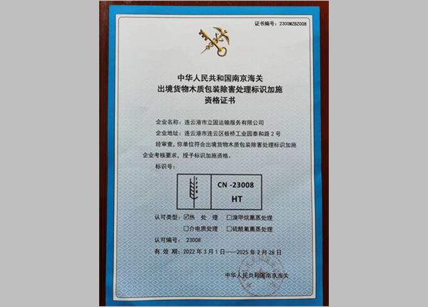 公司廠房占地20余畝,擁有專業(yè)機械設備30套,專業(yè)技術(shù)人員50余名。擁有一套現(xiàn)代化的能效高、效果好的熱處理窯,能較好的完成木材的干燥及有害生物的殺滅,已于2007年獲得出境木質(zhì)包裝標識加施資格,是連云港海關(guān)指定定點木包裝熱處理單位。經(jīng)我公司加工出口的木質(zhì)包裝年產(chǎn)量20萬套以上,產(chǎn)值1600萬余元。目前是連云港區(qū)域同行業(yè)規(guī)模及產(chǎn)能最大的專業(yè)生產(chǎn)廠家。